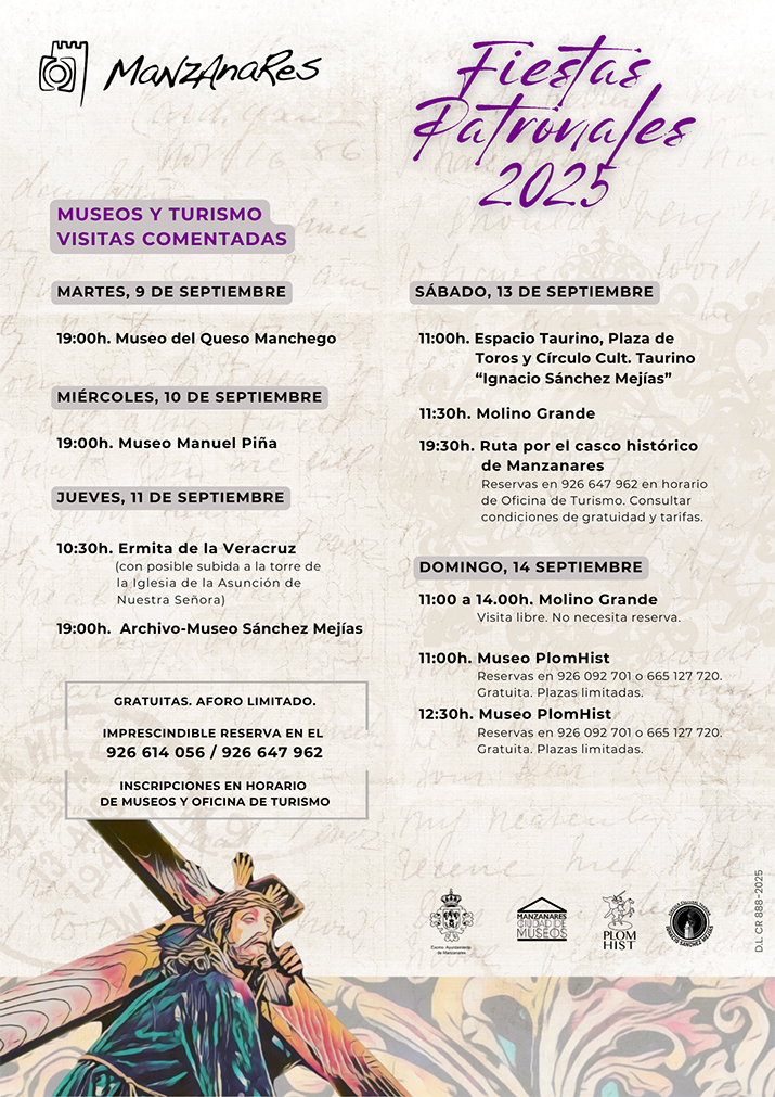 FIESTAS PATRONALES 2025 VISITAS GUIADAS. COLABORA EXCMO. AYUNTAMIENTO DE MANZANARES